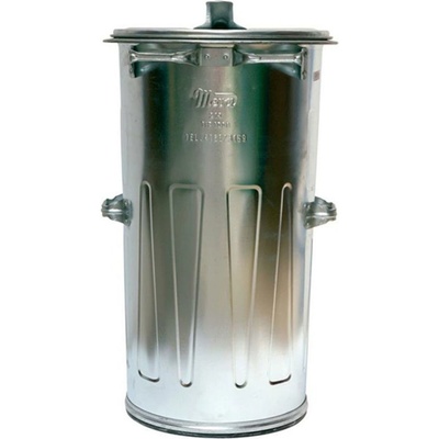 Kulatá plechová popelnice 110 litrů pozinkovaná Nádoba vhodná pro sběr tuhého domovního odpadu u rodinných domků. Nádoba je opatřena ve spodní části gumovou obručí, čímž je výrazně snížena hlučnost při manipulaci. Závěsy pro vyklápění odpovídají normě DIN...