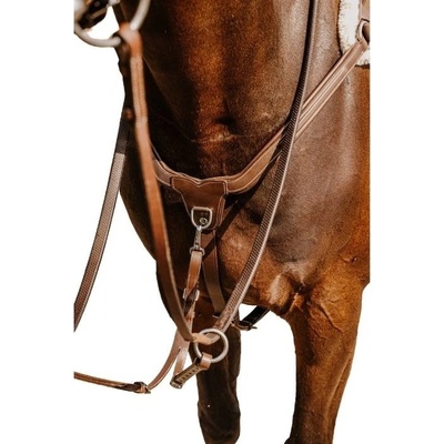 Oblíbený kožený honební poprsník od KenTaur. Díly na pleci jsou měkce polstrované, navíc ozdobené dekorativním proševem a pro maximální komfort koně doplněné krátkou gumou....