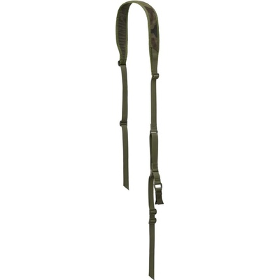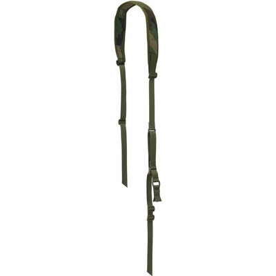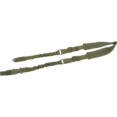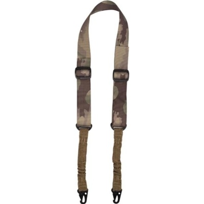 Dvojbodový nastavitelný popruh na zbraň s elastickými částmi. Upevnění zbraně pomocí dvou kovových karabin. Elastický popruh s rozpětím: 15 - 21 cm Nastavitelná délka 67-112...