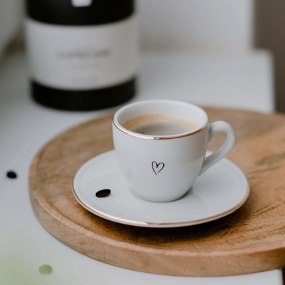 Bella Rose Šálek na espresso s podšálkem Srdíčko 90 ml, bílá barva, zlatá barva, porcelán. Že si dáte raději malé espresso než větší hrnek kávy? Pak si zamilujete roztomilý...
