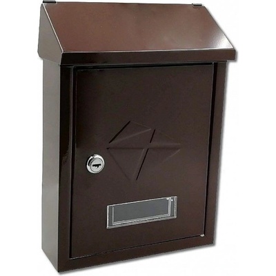 Poštovní schránka Erik zadní vhoz 210x300x60 HnědáHorní vhoz pod stříškou + zadní vhoz, přední výběr zásilekPlastová jmenovka, osazení zámkem - 2x klíčUrčená do interiéruRozměr:...