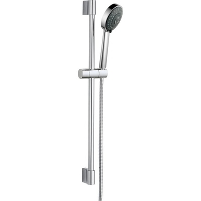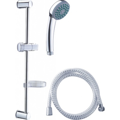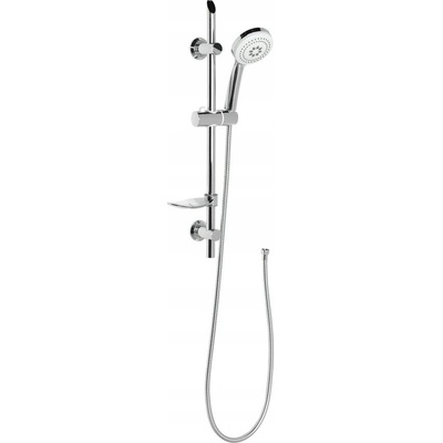 Sprchová souprava v provedení chrom s plastovou mýdlenkou obsahuje 3-polohovou ruční sprchu s průtokem pouze 8 l/min., posuvný držák sprchy v délce 740 mm a kovovou sprchovou...
