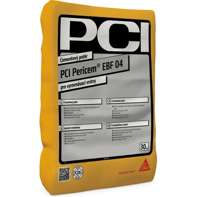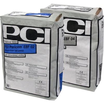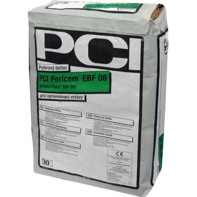 PCI PericemR EBF 02 (10-30mm) Potěrový beton pro vyrovnávací a nášlapné podlahové vrstvy. Pro vnitřní i vnější použití. Po vytvrzení je odolný vůči povětrnostním vlivům. Používá se pro tloušťku vrstvy 10–30 mm. Minimální pevnost v tlaku 25 MPa. Zrnitost: 0–2...
