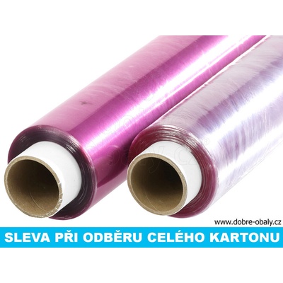 fixace a ochrana zboží zpevňuje celé balení průměrná průtažnost 70% Další typy a barevné varianty naleznete v kategorii stretch fólie. Vhodné pro horizontální ovinovací stroj.