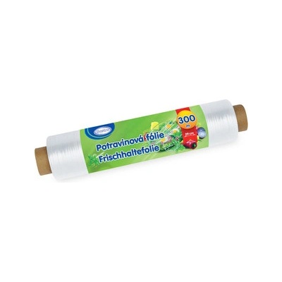 Nejprodávanější potravinová fólie pro ruční balení. Vhodná pro krátkodobé zabalení potravin. Materiál: průtažný polyethylen. šířka: 30cm Návin: 300m Folie potravinářská je...
