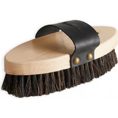 Měkký kartáč určený k dočištění a vyleštění koňské srsti na závěr hřebelcování. Používejte na hřbílkem vyčištěnou srst. Jemný kartáč s dřevěnou rukojetí. Pohodlné kožené poutko....