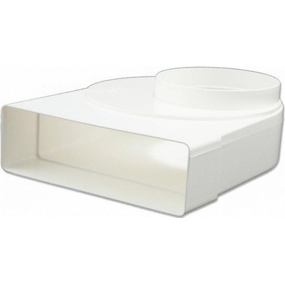PVC redukce 90° ve tvaru kolena pro napojení kulatého potrubí Ø 100 mm a hranatého potrubí 204x60 mm nebo komponentů. Tato redukce se nejčastěji využívá k přechodům mezi digestoří a potrubím.