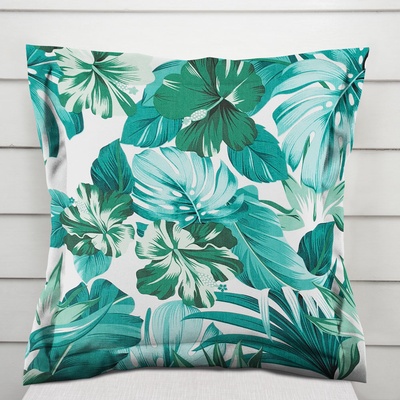 Bavlněný povlak na polštář s ozdobným lemem, se vzorem modro-zelených květů a listů monstery na bílém podkladu. Je ušitý z hustě tkaného 100% bavlněného plátna s certifikátem...