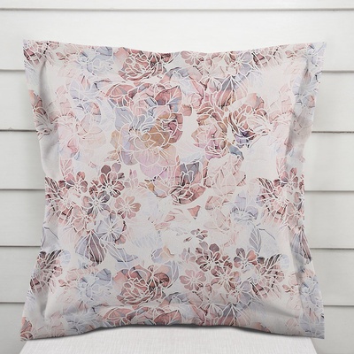 Dekorační povlak na polštář s ozdobným lemem, se vzorem růžových a fialkových květů na bílém podkladu. Je ušitý z kvalitní hladce tkané 100% polyesterové látky Rongo. Použitá...