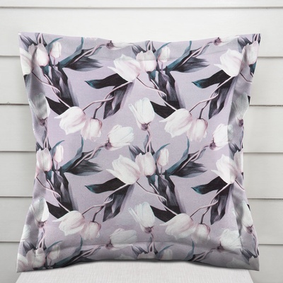 Dekorační povlak na polštář s ozdobným lemem, se vzorem bílých tulipánů na šedém podkladu s fialovým nádechem. Je ušitý z kvalitní a pevné dekorační látky s digitálním tiskem,...