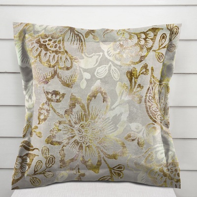 Dekorační povlak na polštář se vzorem pnoucích lístků na šedém podkladu. Je ušitý z kvalitní a pevné španělské látky z 55% bavlny a 45% polyesteru. Zapínání na zip je skryté na...