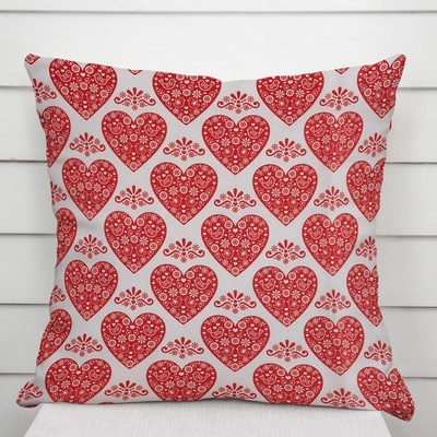 Dekorační povlak na polštář se vzorem červených srdíček s ornamenty na bílém podkladu. Je ušitý z kvalitní a pevné dekorační látky s digitálním tiskem, se složením z 40% bavlny...