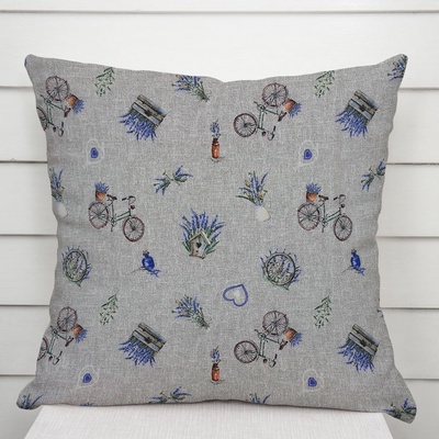 Dekorační povlak na polštář se vzorem levandulí a kol na šedém režném podkladu. Je ušitý z kvalitní a pevné dekorační látky s digitálním tiskem, se složením z 40% bavlny a 60%...