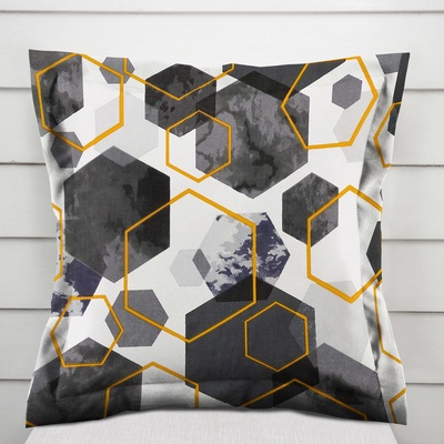 Bavlněný povlak na polštář s ozdobným lemem, se vzorem světle šedých, tmavě šedých a tmavě modrofialových hexagonů na bílém podkladu. Je ušitý z hustě tkaného 100% bavlněného...