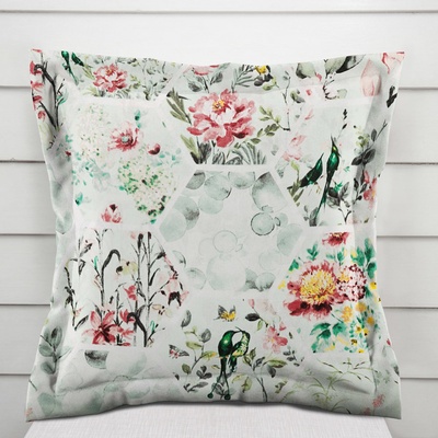 Bavlněný povlak na polštář s ozdobným lemem, se vzorem květin na mintovém hexagonu. Je ušitý z hustě tkaného 100% bavlněného plátna s certifikátem zdravotní nezávadnosti...