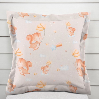Bavlněný povlak na polštář s ozdobným lemem, s milým dětským motivem veverek s květinami na šedobéžovém podkladu. Je ušitý z hustě tkaného 100% bavlněného plátna s certifikátem...