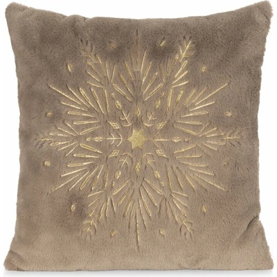 Takoy Vánoční povlak na polštář 45x45 cm světle hnědý, šampaňský z příjemné kožešinky, zdobený výšivkou vloček-HF-477985 | 45 x 45 cm