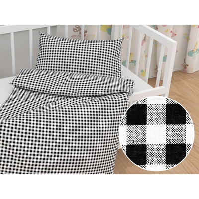 Dětské bavlněné povlečení do postýlky se vzorem černých a bílých kostiček o velikosti cca 1 x 1 cm. Je ušité z hustě tkaného 100% bavlněného plátna s certifikátem zdravotní...