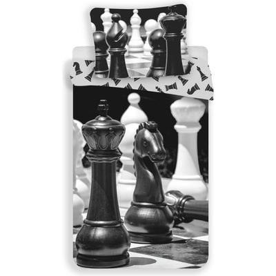 Bavlněné povlečení s motivem šachových figurek v černo-bílé barvě. Na lícní straně jsou velké figurky. Druhá strana má figurky malé na bílém pozadí. Souprava je vyrobena ze 100%...