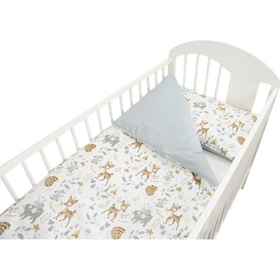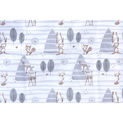 Měkoučké bavlněné povlečení do postýlky přinese vašim nejmenším pohodový spánek. Jednu stranu povlečení zdobí krásný motiv lesních zvířátek a druhá strana je šedé barvy. Díky...