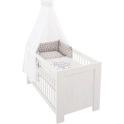 Set povlečení do postýlky: mantinel, povlečení na polštář a peřinku Rozměr: polštář 60x40cm, peřinka 135x100cm, mantinel délka 180cm, výška včele 42cm, po stranách 28cm Mantinel...