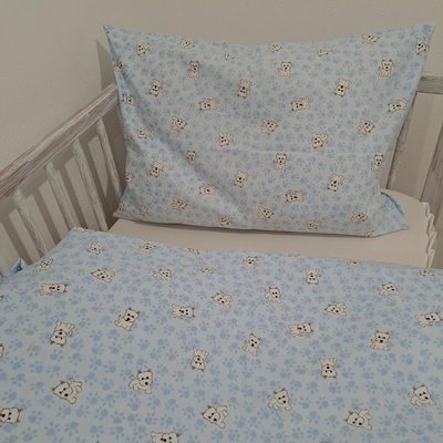 Dětské bavlněné povlečení do postýlky s milým dětským motivem modrých baby soviček. Je ušité z hustě tkaného 100% bavlněného plátna s certifikátem zdravotní nezávadnosti...