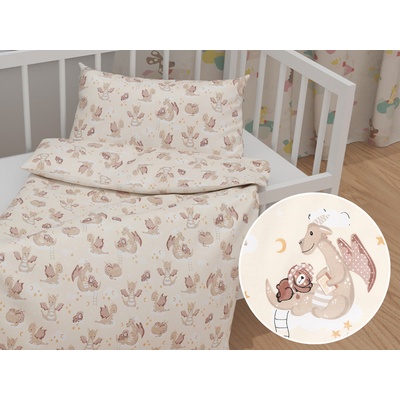 Dětské bavlněné povlečení do postýlky se vzorem dráčků na žlutobéžovém podkladu. Je ušité z hustě tkaného 100% bavlněného plátna s certifikátem zdravotní nezávadnosti Oeko-Tex...