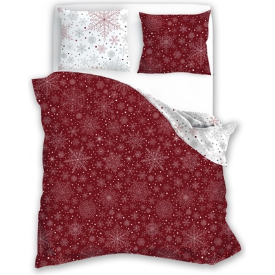 Vánoční francouzské bavlněné povlečení Renforcé - Sněhové vločky červené skladem, za cenu 1299 Kč