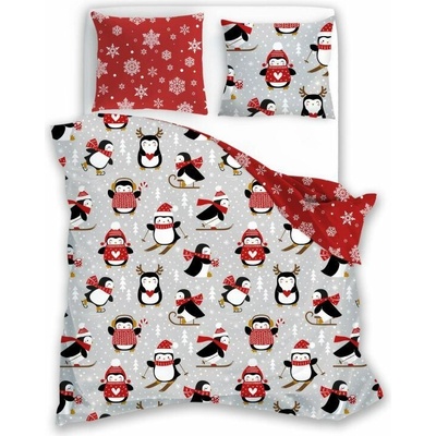 FARO Francouzské Vánoční povlečení Scandic 076 Tučňáci 220/200, 2x70/80 Bavlněné povlečení ve francouzském rozměru 220x200 cm na dvoulůžko, zapínání na zip Materiál: 100%...