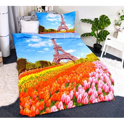 Kvalitní povlečení z mikrofáze 3D Jarní Paříž na jednolůžko s krásným vzorem hnědé Eiffelovky a oranžových tulipánů na oranžovém podkladu. Povlečení je vyrobeno ze 100 %...