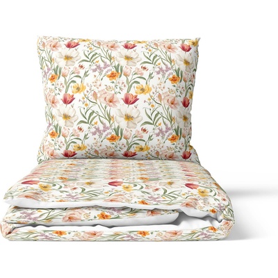 Bavlněné povlečení za dostupnou cenu se vzorem různých druhů jarních květin. Povlak na přikrývku i polštář má vzor z obou stran stejný. Souprava je vyrobena ze 100% bavlny...