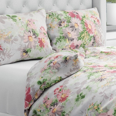 Bavlněné ložní povlečení se vzorem malovaných květů v pastelových růžovo-červených barvách na světle šedém/bílém podkladu. Je ušité z hustě tkaného 100% bavlněného plátna s...