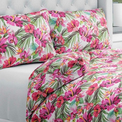 Bavlněné ložní povlečení se vzorem růžovo-červených havajských květů na bílém podkladu. Je ušité z hustě tkaného 100% bavlněného plátna s certifikátem zdravotní nezávadnosti...