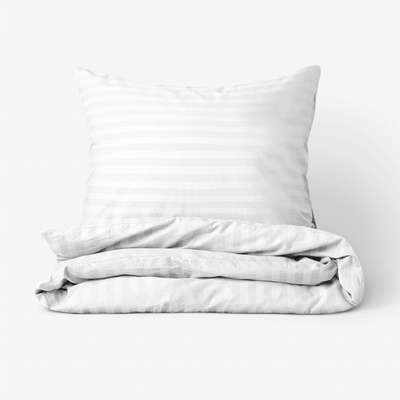 Bílé damaškové bavlněné ložní povlečení Atlas Gradl se vzorem střídajících se tenkých proužků o šířce 22 mm. Je ušité z damaškové látky, tkané z velmi jemných 100% bavlněných...