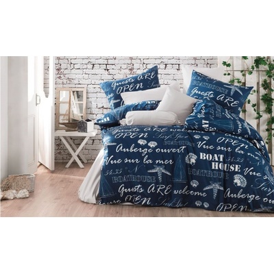 Bavlněné povlečení Lodě Moderní bavlněné povlečení Lodě v modré a bílé barvě s anglickýmí nápisy. - Materiálové složení látky - 100 % bavlna - Plošná hmotnost (gramáž) látky...