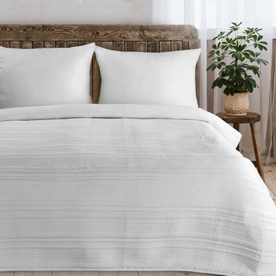 Přehoz TARA s prošíváním v pruhovaném vzoru. Šířka: 170 cm, délka: 210 cm, barva: bílá, gramáž: 320 GSM, složení: 100% polyester.