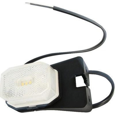 Přední LED bílá obrysová svítilna s montáží přímo na přední část vozu, 3x LED dioda, zapojení kabelem 2x0,75 mm² Rozměr 59x39x29mm Včetně odrazky