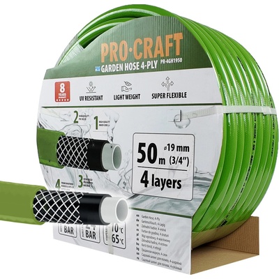 Zelená zahradní hadice Procraft PR-4GH1950 4 vrstvy, 3/4" 50 m Tato zelená zahradní hadice Procraft PR-4GH1950 je ideální volbou pro spolehlivé zalévání a zavlažování vaší...