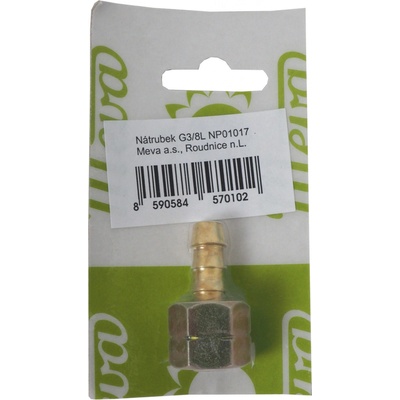 Nátrubek s maticí G3/8" L na hadici ⌀8 mm MEVA UNP01017 – přechodka pro plynový vařič Nátrubek G3/8" L s maticí určený pro připojení plynové hadice ⌀8 mm k nízkotlakému vařiči...