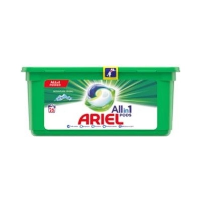 Kapsle na praní Ariel All-in-1 PODS Mountain Spring mají skvělé účinky při odstraňování skvrn už od prvního praní při nižší teplotě. Balení obsahuje 44 kapslí.