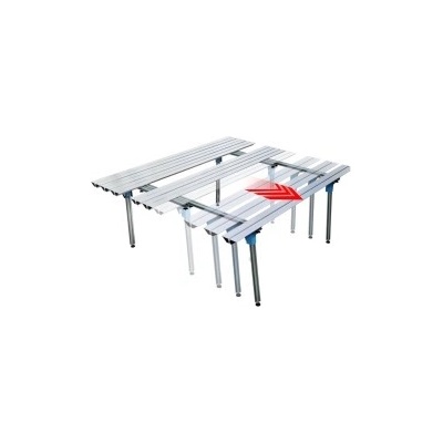Rozebíratelný a modulární pracovní stůl s nastavitelnou šířkou 96-165 cm, délkou 180 cm a volitelnou výškou 82/90 cm