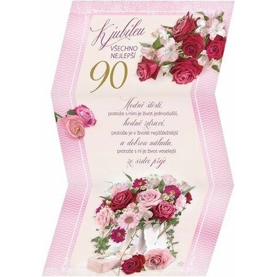 Přání pro ženu k 90. narozeninám - listina. S textem uvnitř přání. Součástí balení je i barevně sladěná obálka. Originální technologie zpracování přáníčka od společnosti ARGUS -...