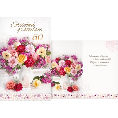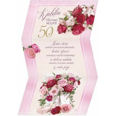 Přání pro ženu k 50. narozeninám - listina. S textem uvnitř přání. Součástí balení je i barevně sladěná obálka. Originální technologie zpracování přáníčka od společnosti ARGUS -...