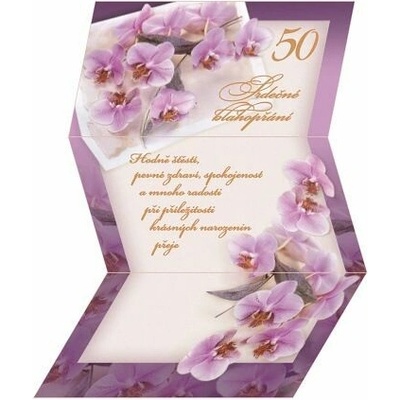 Přání k 50. narozeninám - listina s textom. Součástí balení je i barevně sladěná obálka. Originální technologie zpracování přáníčka od společnosti ARGUS - "Na detailu záleží!"