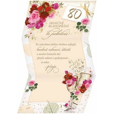 Přání k 80. narozeninám s textem a záložkou na peníze uvnitř blahopřání.* součástí blahopřání je barevně sladěna obálka* originální technologie zpracování přáníčka od...