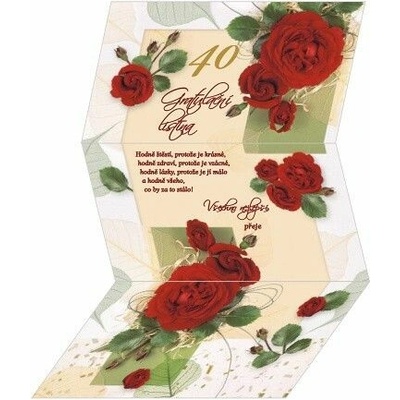 Přání pro ženu k 40. narozeninám - skládací listina. S textem uvnitř přání. Součástí balení je i barevně sladěná obálka. Po složení je blahopřání v rozměru DL obálky....
