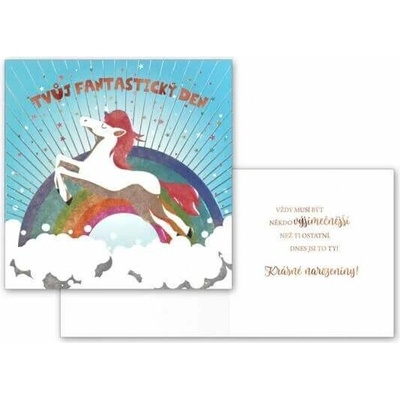 Narozeninové přání s motivem jednorožce a duhy je perfektní volbou pro všechny děti i dospělé, kteří milují pohádkové a barevné motivy. Přání má netradiční čtvercový tvar, který...