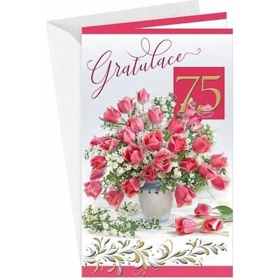 Přání k 75. narozeninám s textem uvnitř přání. Součástí blahopřání je barevně sladěna obálka. Originální technologie zpracování přáníčka od společnosti ARGUS - "Na detailu...