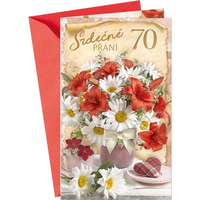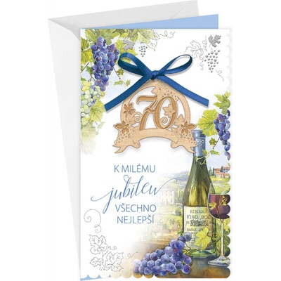 Přání k 70. narozeninám s lepenou mašličkou a s textem uvnitř.* součástí blahopřání je barevně sladěna obálka* originální technologie zpracování přáníčka od společnosti ARGUS -...