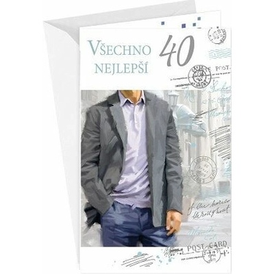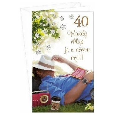 Přání k 40. narozeninám pro muže s textem uvnitř. Součástí blahopřání je barevně sladěna obálka. Originální technologie zpracování přáníčka od společnosti ARGUS - "Na detailu...